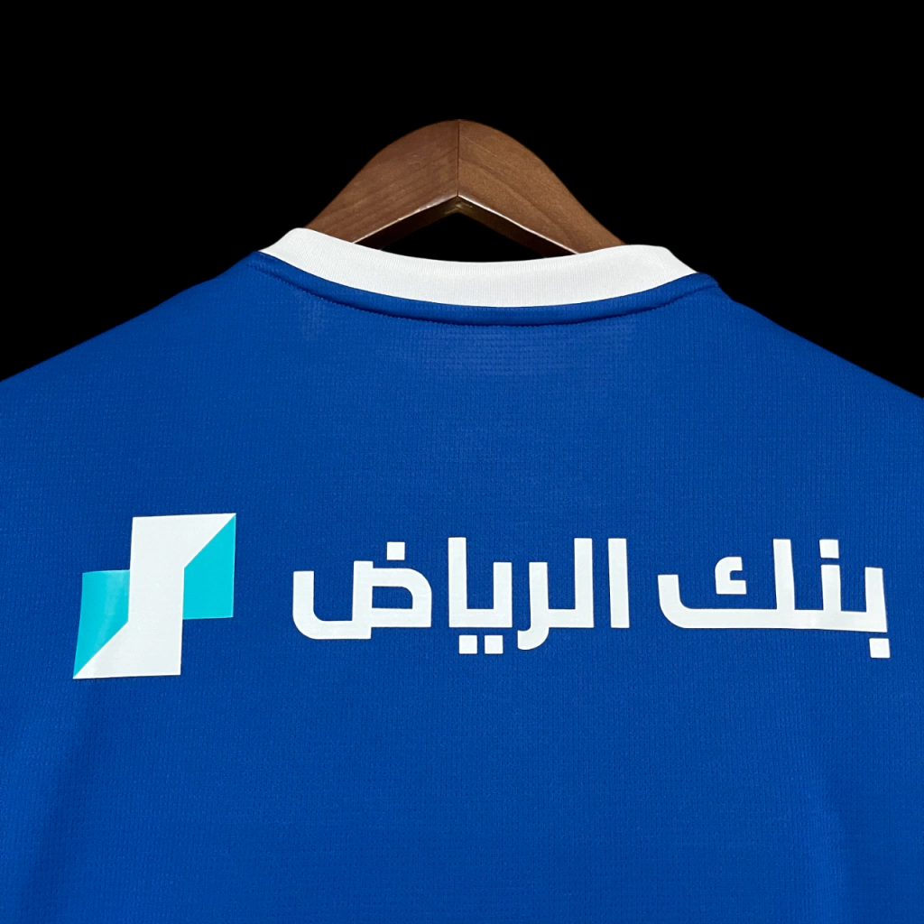 A nova camisa titular do Al-Hilal para a temporada é azul e traz um padrão com diversos triângulos em tons da cor, na região frontal e nas mangas.