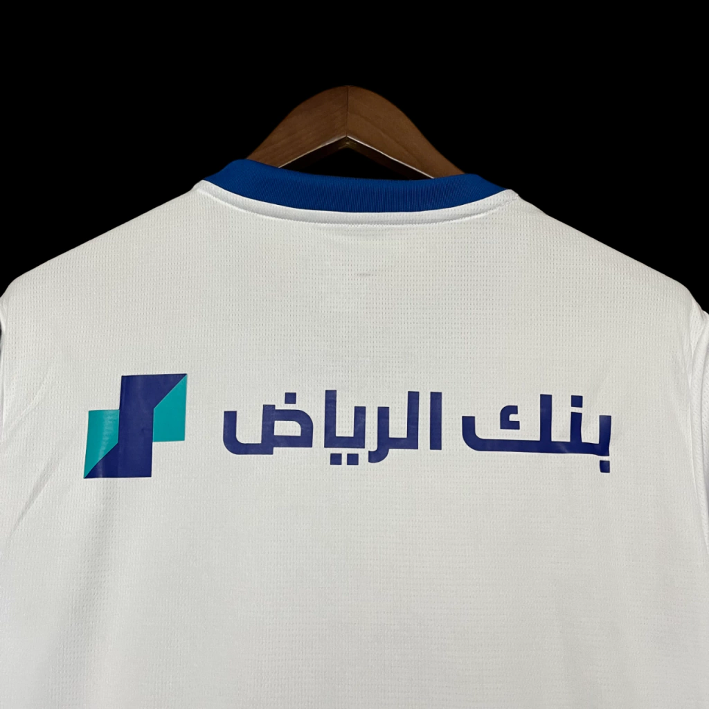 A nova camisa reserva do Al-Hilal para a temporada é branca e traz, na região frontal, um padrão de linhas cinzas que lembram impressões digitais.
