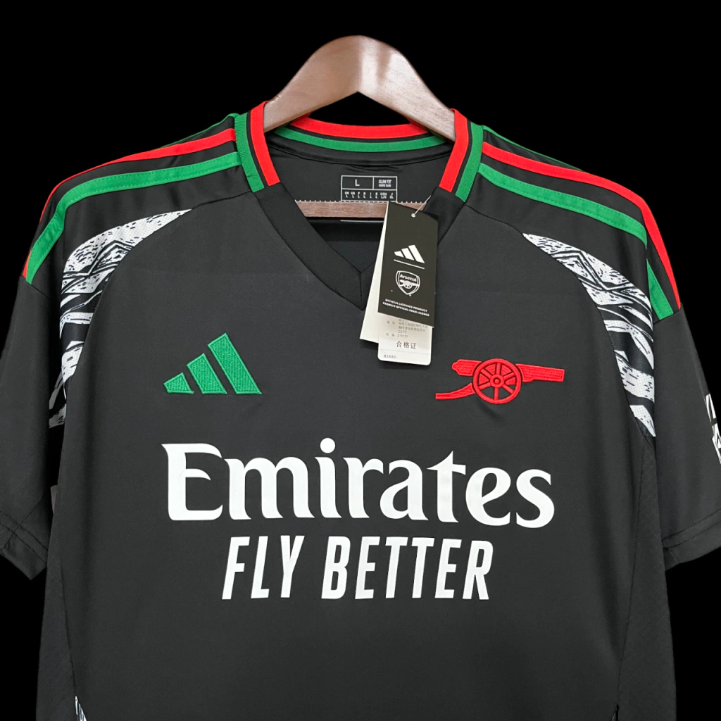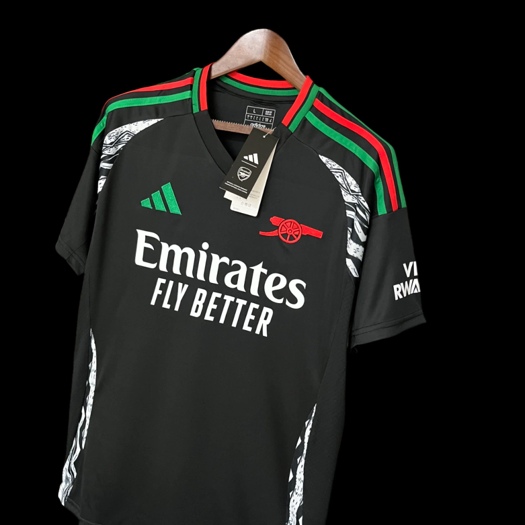A camisa reserva do Arsenal é preta e traz como cores complementares, o vermelho e o verde, que segundo o clube, são as cores tradicionais pan-africanas.