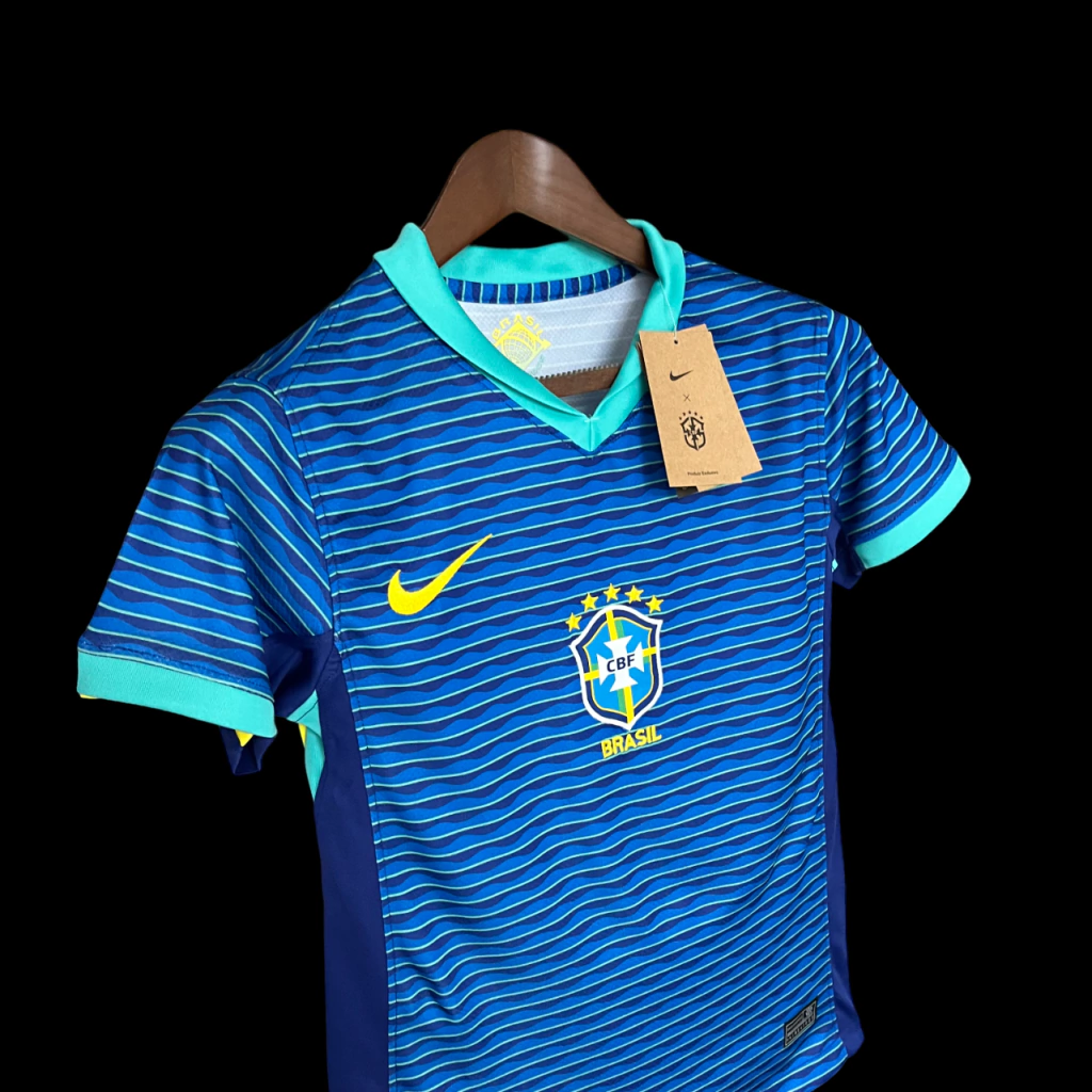 A nova camisa reserva feminina da Seleção Brasileira também tem como destaque o retorno do escudo centralizado, mas não é só isso, o kit também se destaca pelo seu padrão azul com ondas texturizadas.