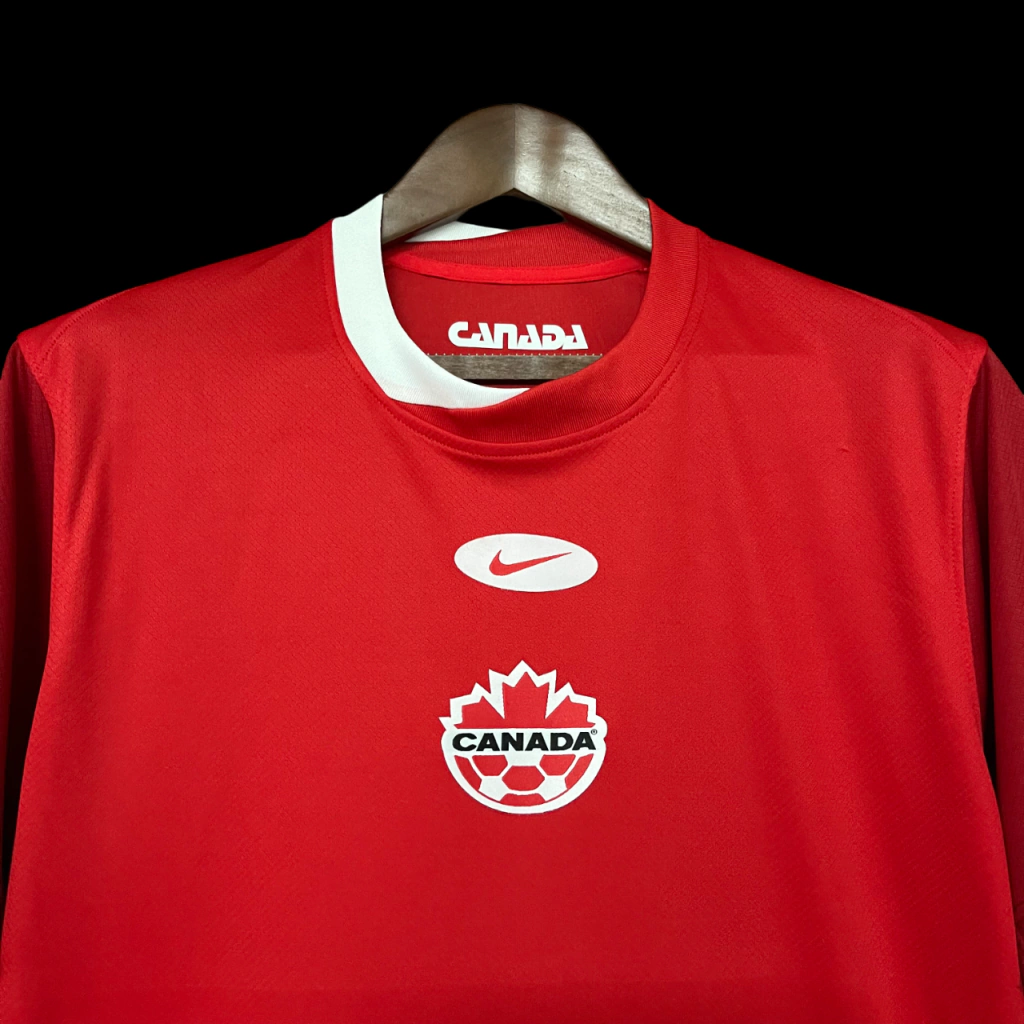 A nova camisa titular do Canadá celebra o DNA esportivo do país, trazendo o vermelho como predominante, com uma faixa lateral grená, que chega às mangas.