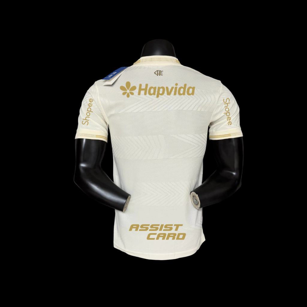 A nova terceira camisa do Flamengo faz referência às origens do clube, e ganha a cor off-white predominante, com detalhes dourados que ganham destaque na gola V.