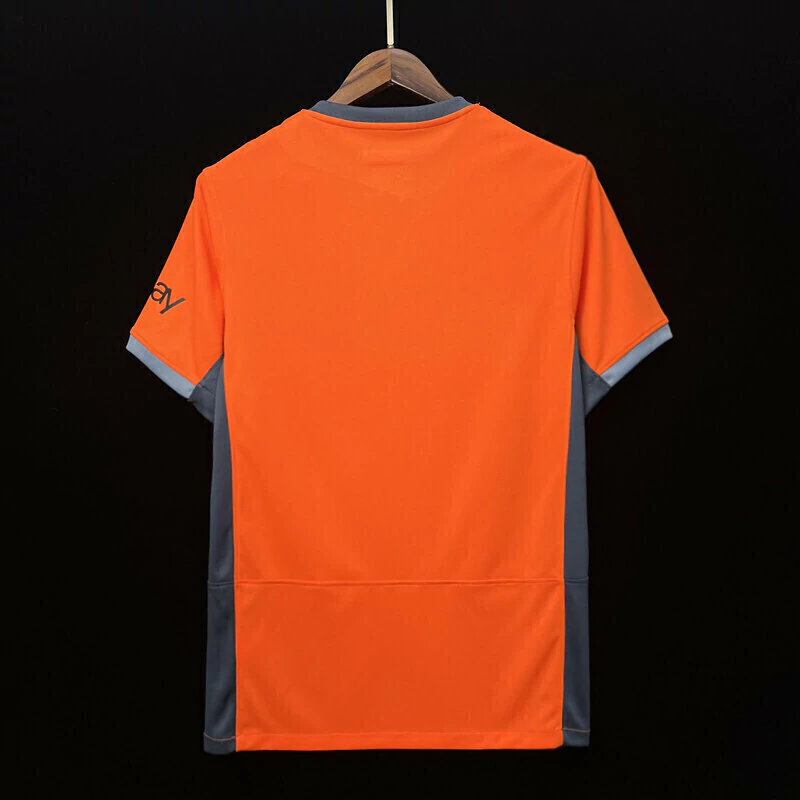 A nova camisa três da Inter de Milão é laranja e ganha gola redonda com a parte frontal em azul celeste e a nuca azul escura.