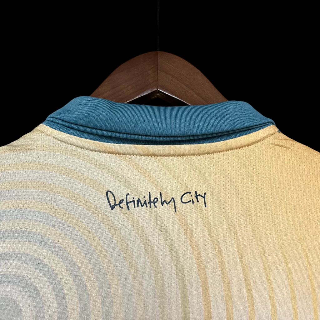 A nova quarta camisa do Manchester City ganha cores inspiradas na capa do álbum “Definitely Maybe”, que completa 30 anos em 2024.