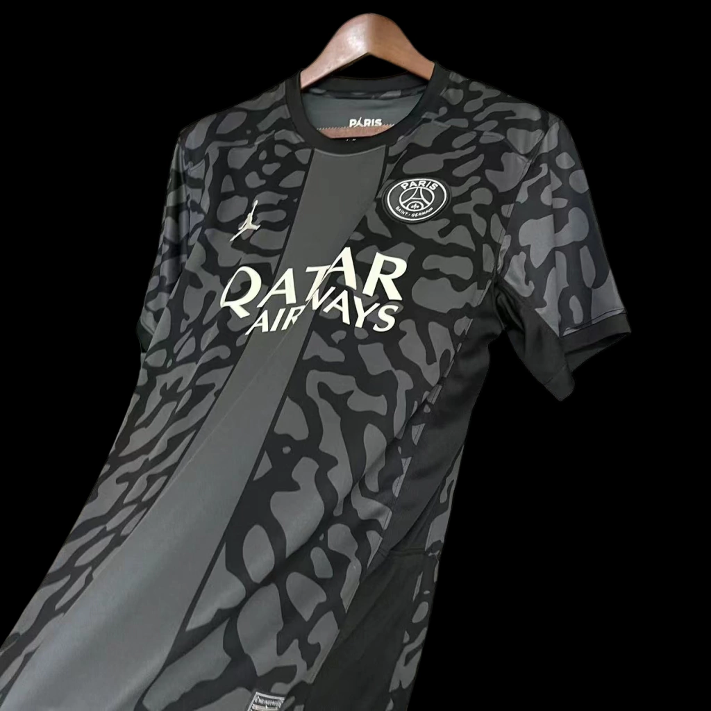O novo manto três do PSG traz inspiração na icônica estampa de elefante, bastante usada nos tênis do Jumpman desde 1988.