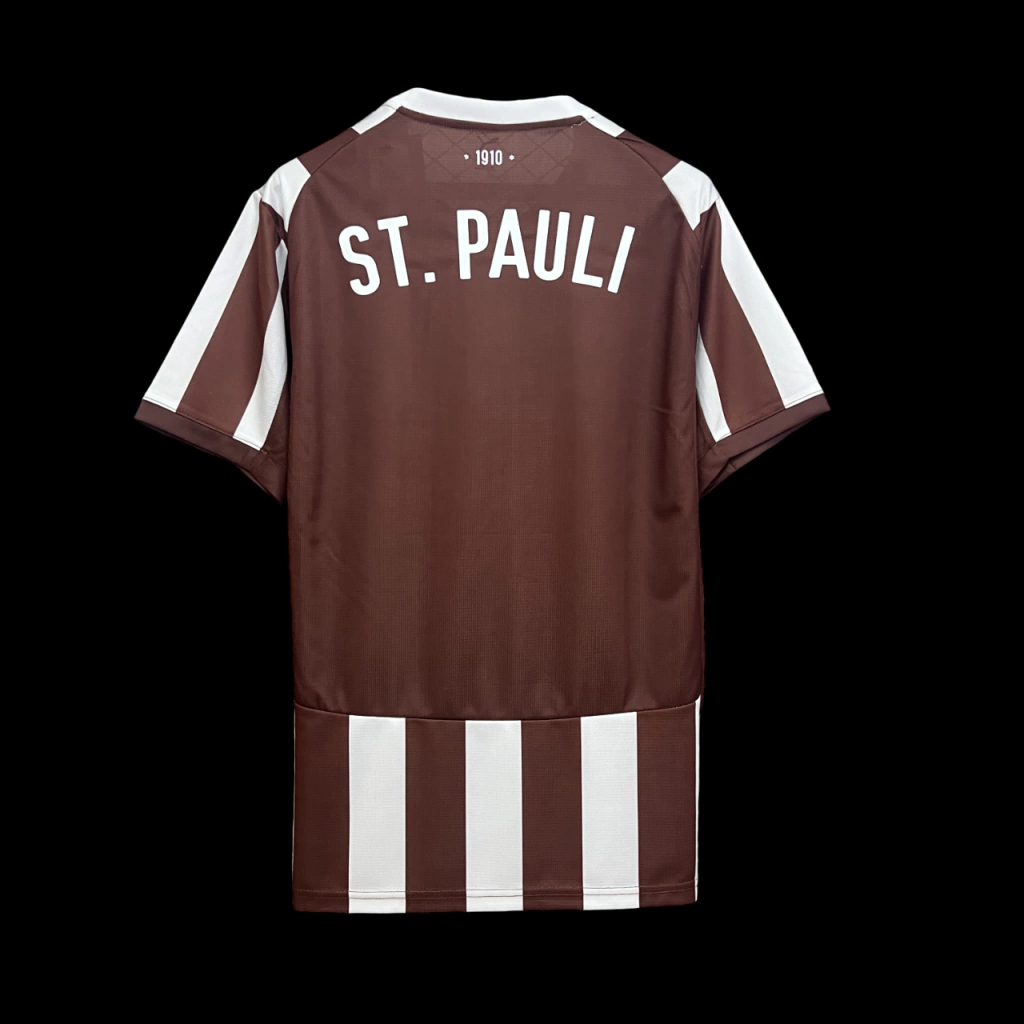 A camisa titular do St. Pauli para a temporada é baseada no template padrão da marca e traz de volta as tradicionais listras verticais em marrom e branco, em homenagem aos 115 anos da equipe.