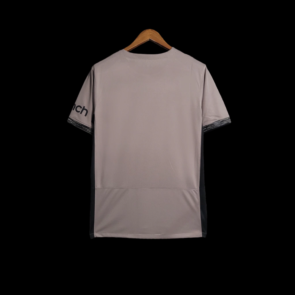 O novo manto três do Tottenham 23/24 traz como cor predominante o bege, que, segundo o time, foi batizado de Taupe Haze e é inédito na história dos Spurs.