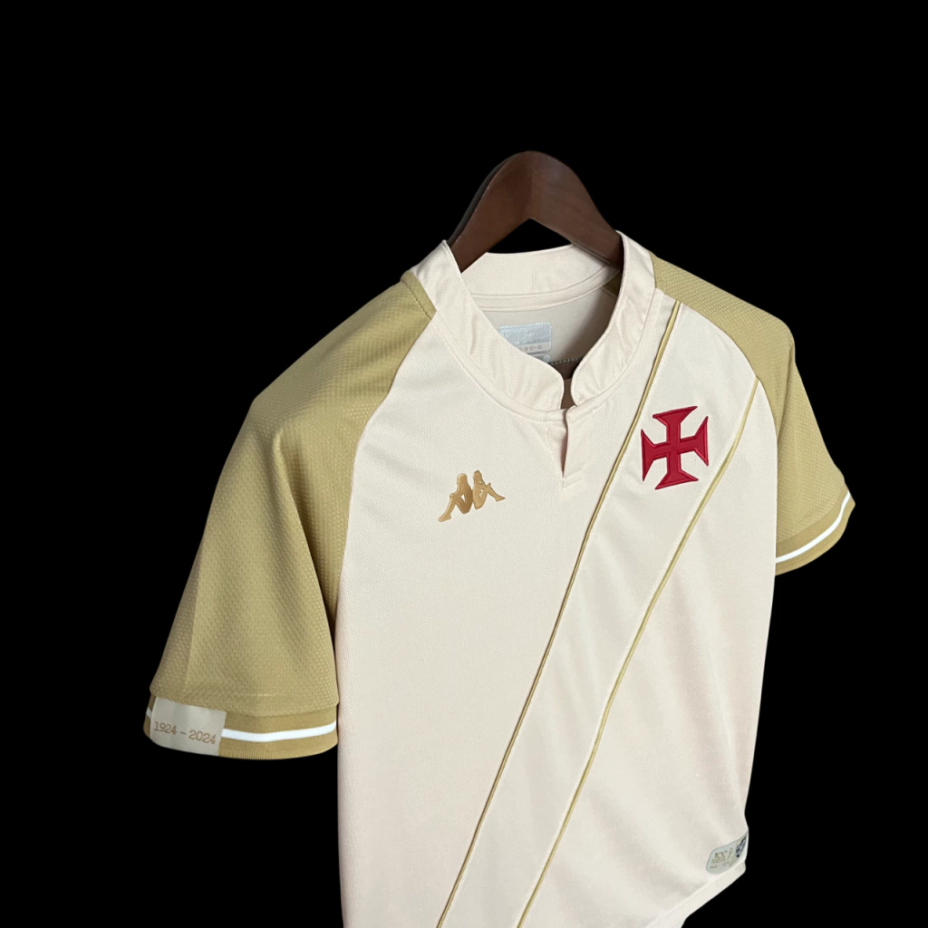A nova terceira camisa do Vasco da Gama é bege e traz como destaque, uma tecnologia de revelação de trecho da carta, que é revelada em contato com a água.