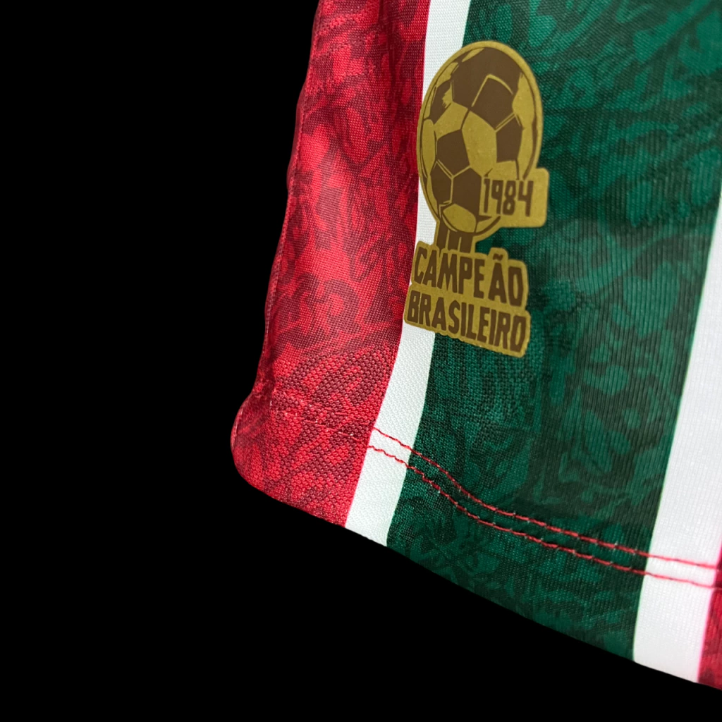 A camisa regata titular do Fluminense para a temporada, traz as tradicionais listras verticais em vermelho, branco e grená, que desta vez também aparecem nas mangas e traz um grafismo em linhas abstratas e desconstruídas em referência à “Art Déco”.